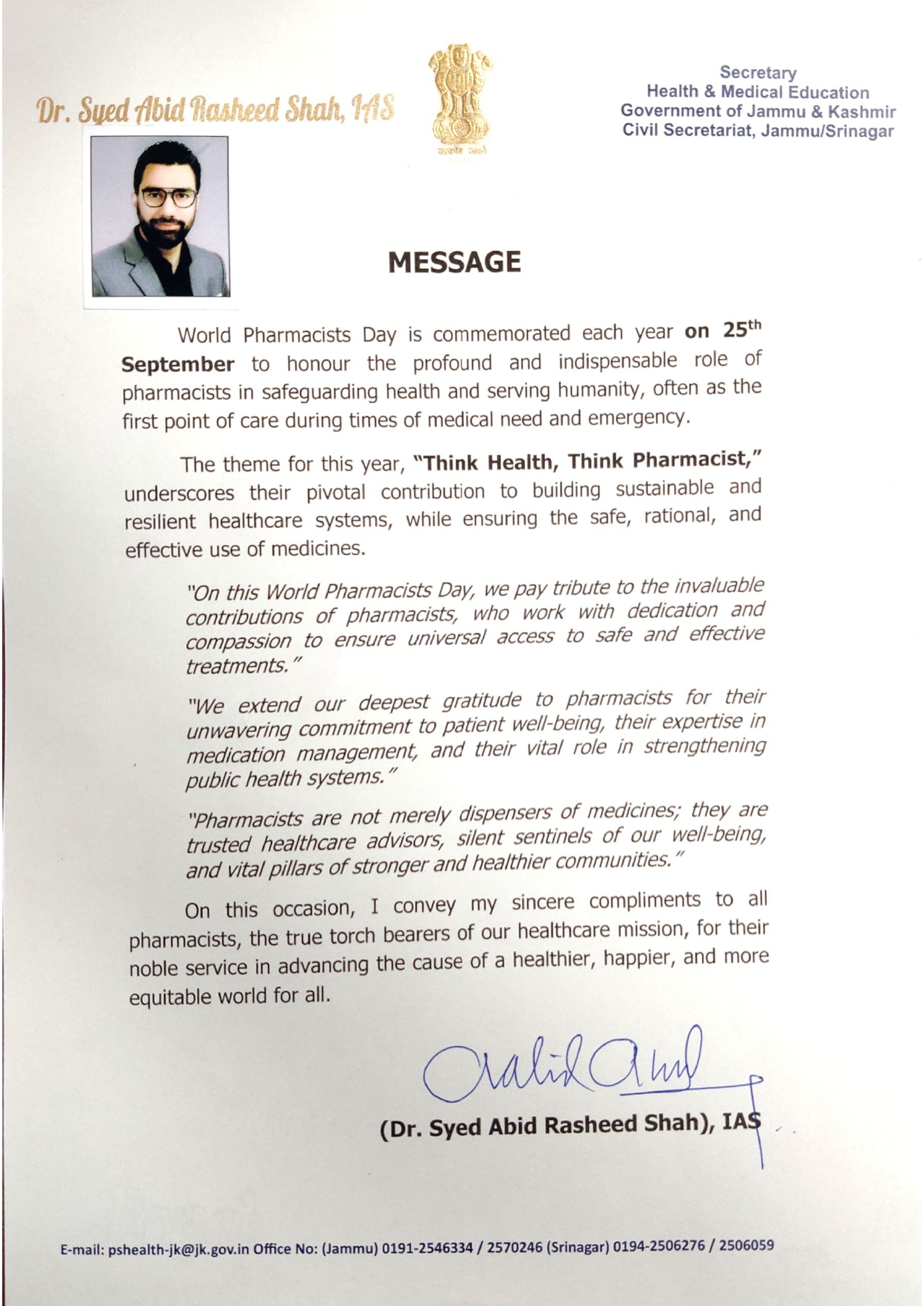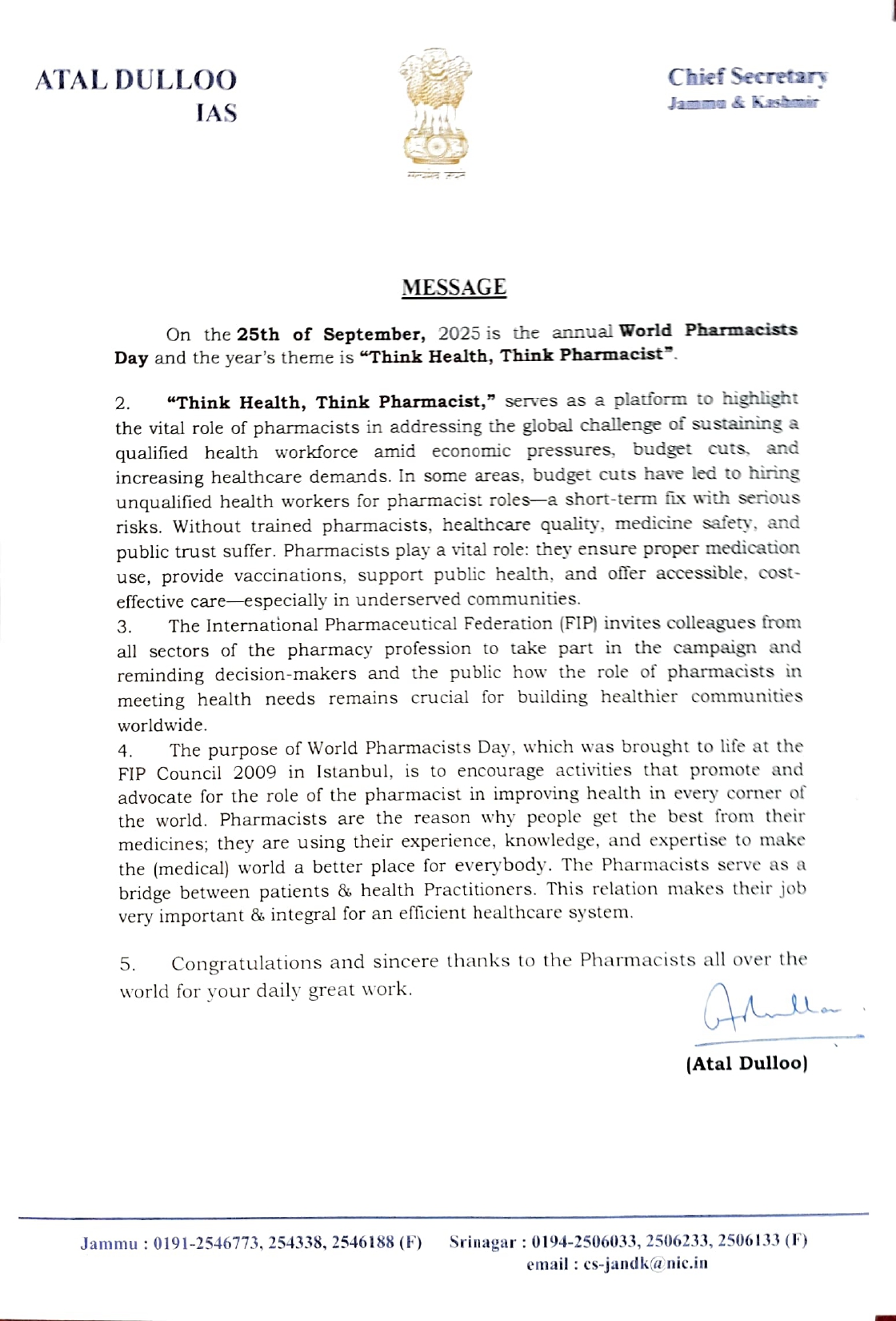 Email: presidentjkpharmacycouncil@gmail.com jkpharmacycouncil@gmail.com jkpcverf@gmail.com (for Verification)